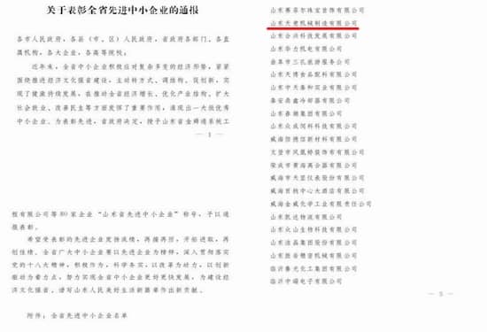 中國中小企業(yè)山東網公布了《關于表彰全省中小企業(yè)的通報》,山東天意機械股份有限公司被評為全省先進中小企業(yè)!