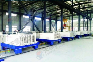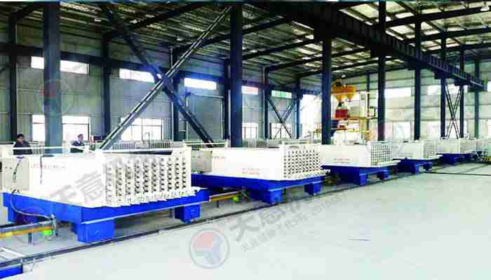TY12型墻板生產線包括:墻板成型機、整體穿抽管系統、發(fā)泡系統、水箱、電子計量儲料倉、螺旋上料輸送機、儲料罐、螺旋輸送機、EPS熟化料倉、硫化干燥床、EPS預發(fā)機、數控配電室、發(fā)泡攪拌機、整體出板系統、叉車、成品堆放區(qū)、擺渡車。