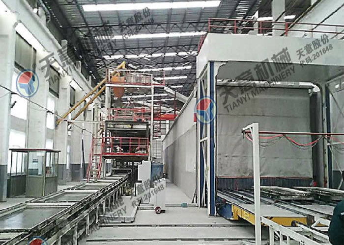 • 多功能墻板生產(chǎn)線,可生產(chǎn)“三明治”夾芯板,鋼邊框屋面板、樓面板,不帶面板復合板。生產(chǎn)線主要分為自動配料系統(tǒng)、攪拌系統(tǒng)、發(fā)泡系統(tǒng)、中央控制配電系統(tǒng)、輕質(zhì)混凝土布料系統(tǒng)、磨光系統(tǒng)、模具循環(huán)系統(tǒng)、養(yǎng)護系統(tǒng)、碼垛系統(tǒng)等部分組成。