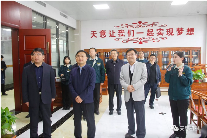 2018年11月27日,省政協辦公廳副主任朱興剛帶領“政協工作齊魯行”集中采訪團一行23人,在市政協副主席陳希忠、兗州區(qū)區(qū)委書記王宏偉等領導陪同下,蒞臨天意機械考察指導,公司董事長劉洪彬熱情接待采訪團一行并陪同參觀。