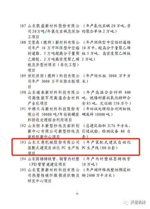 2020年2月 12日,天意機(jī)械的裝配式建筑自動(dòng)化PC生產(chǎn)線項(xiàng)目入選2020年省新舊動(dòng)能轉(zhuǎn)換重大項(xiàng)目庫第一批優(yōu)選項(xiàng)目。對于優(yōu)選項(xiàng)目省內(nèi)各級政府將會(huì)進(jìn)一步加大政策協(xié)調(diào)支持力度,全面落實(shí)土地、能耗、用水、環(huán)境容量、資金等“要素跟著項(xiàng)目走”機(jī)制,全面建立項(xiàng)目評審綠色通道,簡化審查審批環(huán)節(jié),在依法合規(guī)前提下加快項(xiàng)目手續(xù)辦理進(jìn)度。天意機(jī)械的裝配式建筑自動(dòng)化PC生產(chǎn)線項(xiàng)目入選省優(yōu)選項(xiàng)目,既體現(xiàn)了省政府對該項(xiàng)目的重視,也體現(xiàn)出該項(xiàng)目具有新舊動(dòng)能轉(zhuǎn)換的先進(jìn)性。